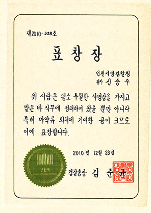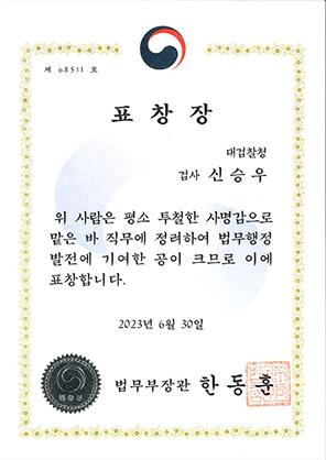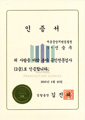 # 대통령 표창 · # 검찰총장 표창 · # 대한변호사협회 인증 · # 공인전문검사